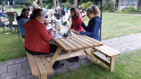 Op zaterdag 2 augustus 2025 hebben we met zo'n 5 personen de picknickbank in elkaar gezet onder toeziend oog van de andere bewoners!