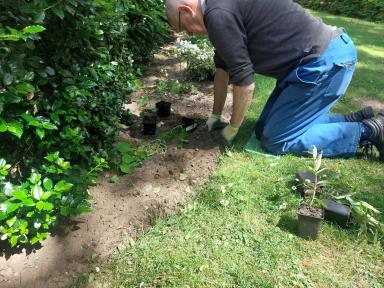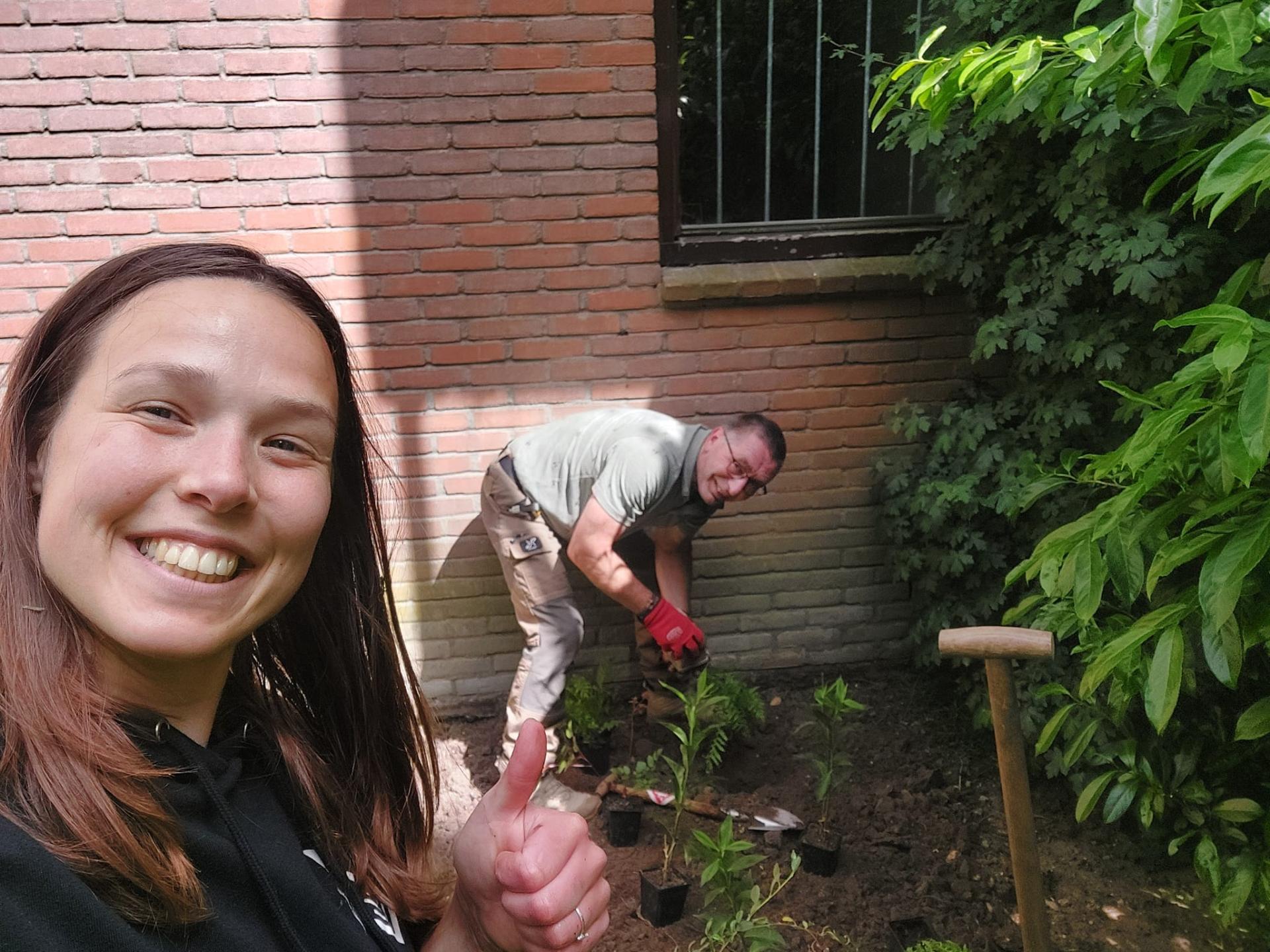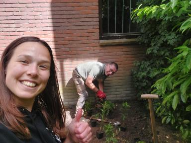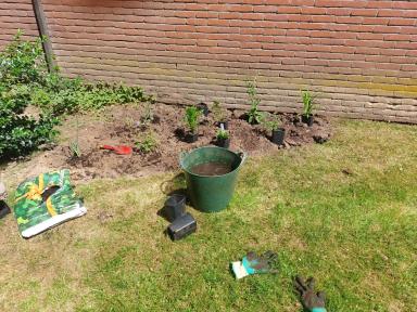 We hebben de planten goed water gegeven en nu hopen dat ze goed gaan groeien en onze tuin weer een stukje mooier zullen maken!