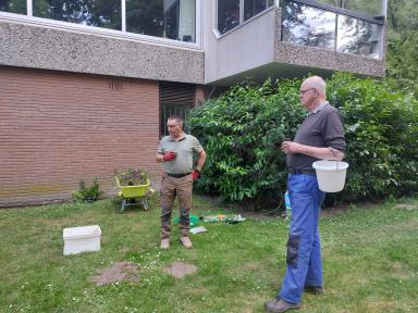 Wij zijn op 22 mei met 6 buren naar de biologische kwekerij de Hessenhof gegaan om daar geschikte planten en bloemen te halen die de biodiversiteit verhogen en bijen en andere insecten aantrekken. Er was goede voorbereiding getroffen door online uit te zoeken welke planten van de biologische kwekerij goed zouden passen en deze op een lijst geprint, wat erg handig was tijdens ons bezoek.