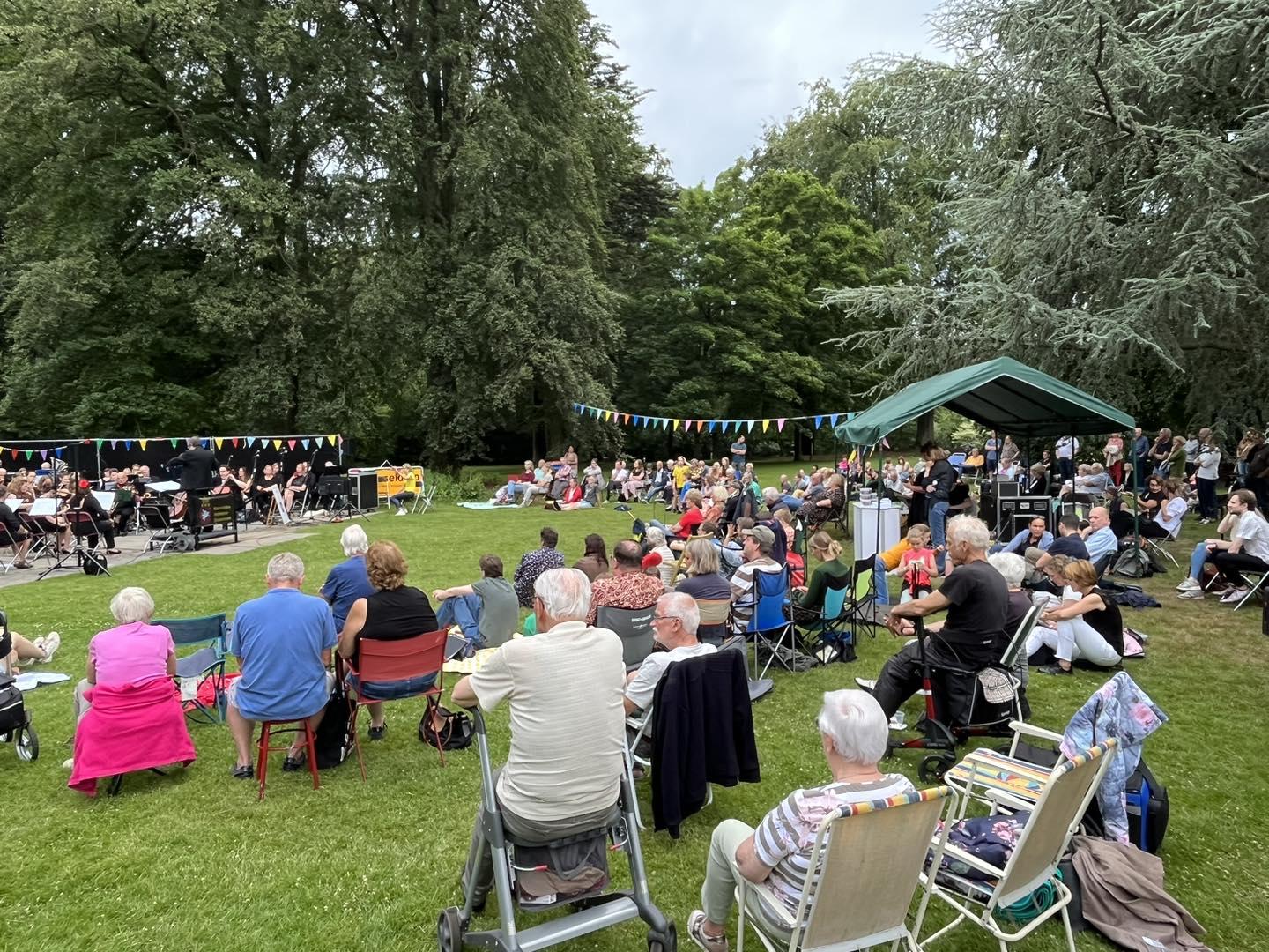 Het concert was erg geslaagd. We hadden veel publiek en een gezellige sfeer. Het weer was een uitdaging, het was ontzettend warm met zo nu en dan een bui. Door flexibel te zijn is het toch gelukt alle optredens door te laten gaan, maar wel in een andere volgorde dan vooraf gepland.